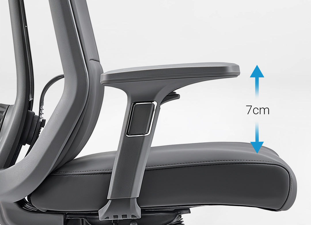 Adjust the armrest height by 7.5 cm to suit your posture and stay comfortable during long work sessions.