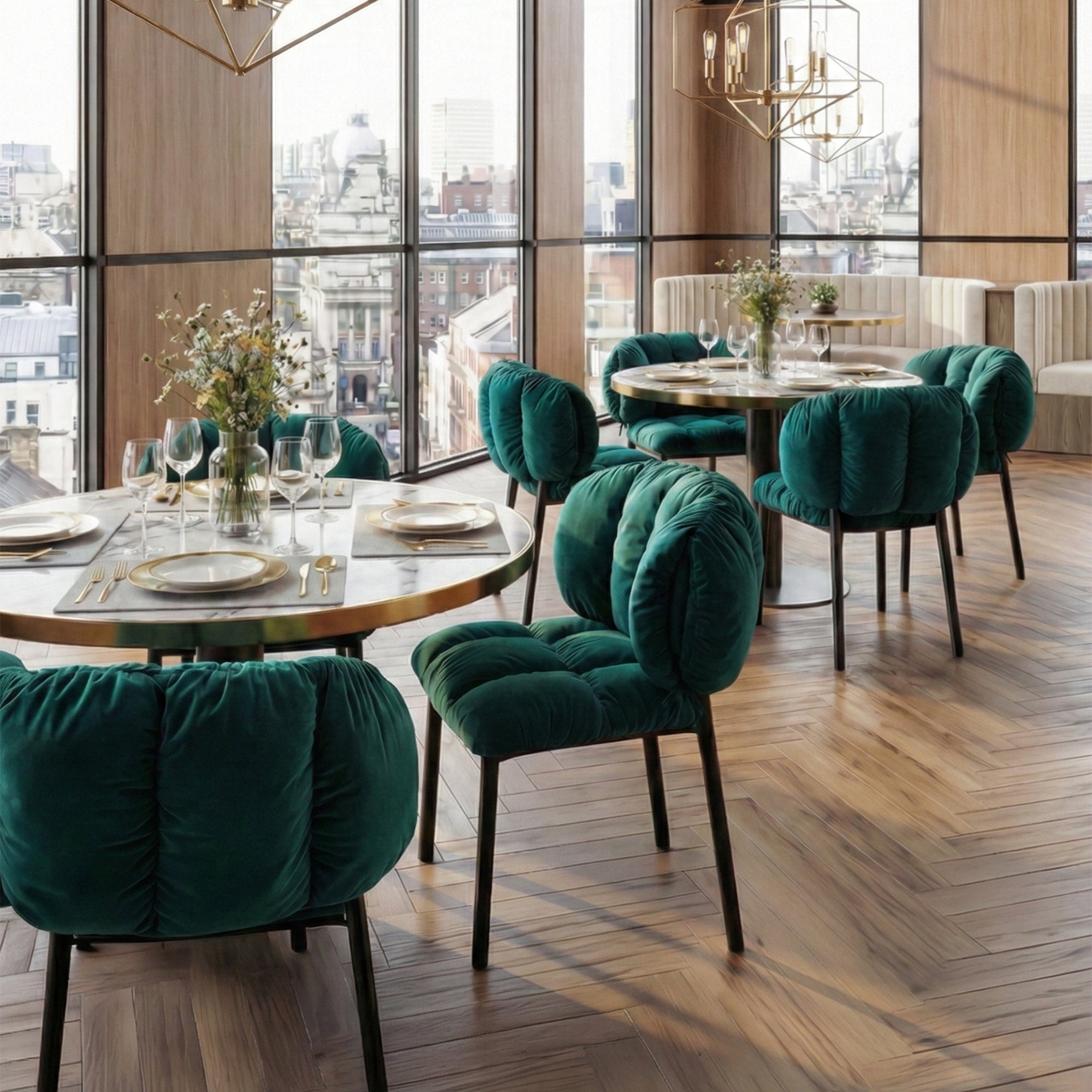 Luxurious and vintage, with a unique petal-shaped design complemented by deep tones, infusing the entire space with luxury and allure, exuding a sense of relaxation. Enveloped in matte velvet fabric, revealing understated grandeur.