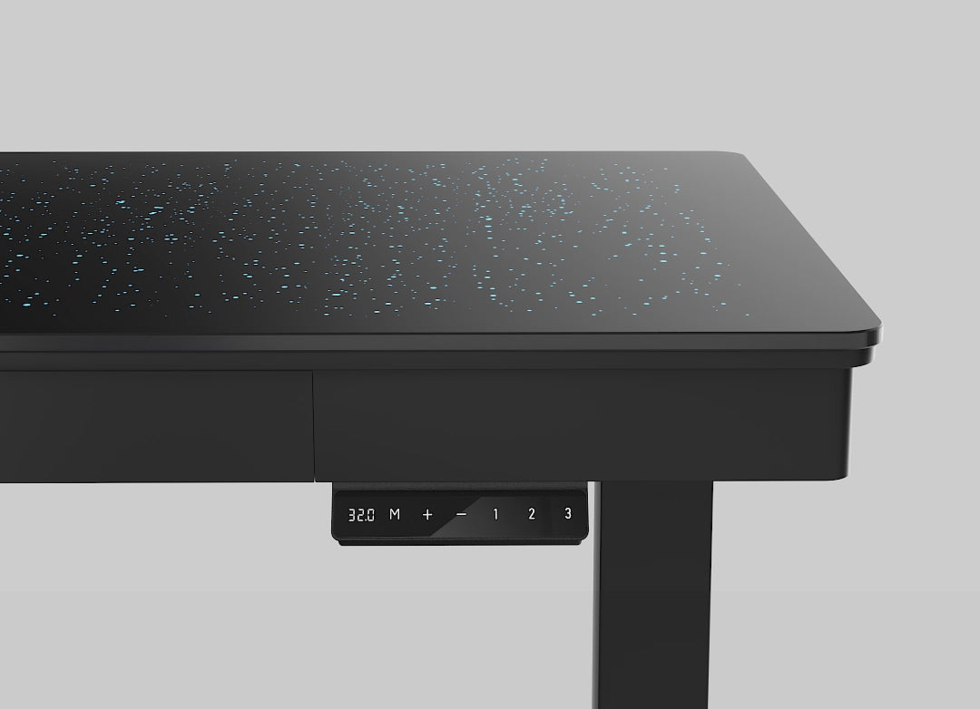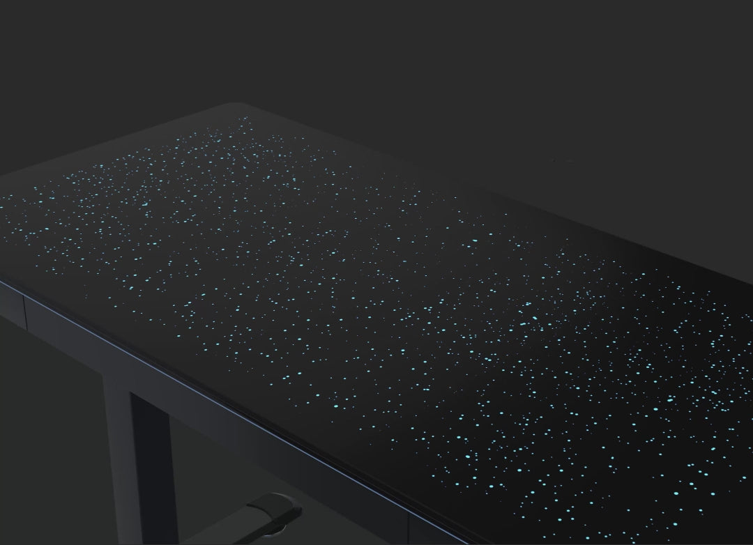 Revolutionize your setup with the first Touch-Sensitive Luminous Standing Desk. Interact with your desktop like never before—lights flow with your touch on a sleek, frosted glass surface. Designed for both work and play, it offers smooth dual-motor height adjustment and immersive audio-reactive lighting.